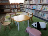 明るく開放的な図書室で、夏はゴザ、冬はホットカーペットの上でくつろいで過ごせる場所です。乳幼児も利用しやすいように、おもちゃなども置いています。