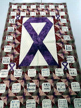 パープルリボンキルトNo.4 サイズ(縦107㎝×横80㎝) 展示しやすい小サイズ。 |