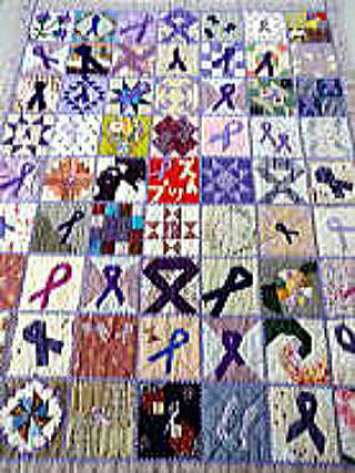 | パープルリボンキルト No.1 サイズ(縦152㎝×横92㎝) 思いをこめたメッセージ入り |