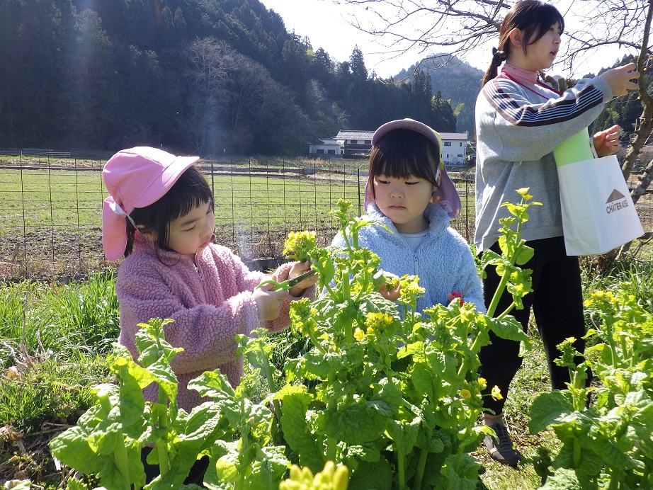 令和8年3月17日に、朝山幼稚園の子供たちが、地区内の春を見つけに出かけました。「梅」や「つくし」や「菜の花」を見つけて歓声をあげていました。