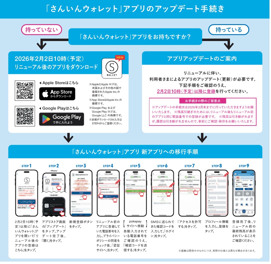 利用者の皆様の利便性の向上を図るため、令和8年2月2日に「いずも縁結びPAY」のシステムのバージョンアップを実施しました。リニューアル後は、アプリのアップデートが必要になりますので、お手続きをお願いします。