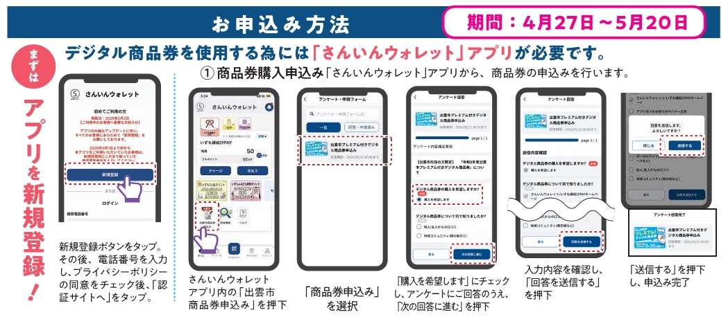 事前準備:さんいんウォレットアプリをスマートフォンにダウンロードし、新規登録する。