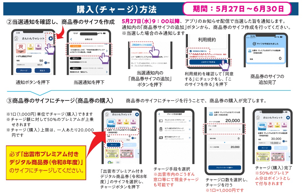 ※現金でのご購入(チャージ)希望の場合、出雲市内の山陰合同銀行の各支店でも対応可能です。