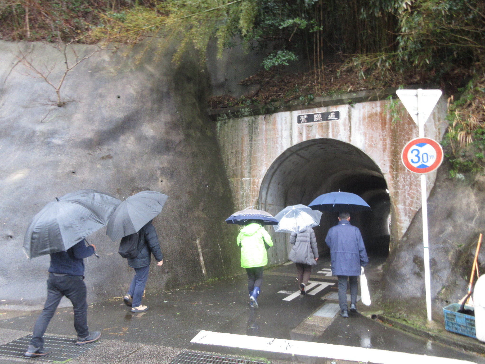 先日、出雲市の担当者と出雲国ジオガイドの会の皆さんと、小雨の中現地を歩いて現地見学しました。
