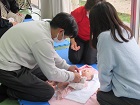 このセミナーでは、初めて家庭に赤ちゃんを迎えるご夫婦を対象にして、夫婦で協力しながら子育て期を過ごすことができるよう、妊娠、出産、育児の各場面で大切にしたい心構えや技術について学んでいただきました。 講師の助産師さんから、妊娠中や育児において夫婦でどのように協力していったらいいか、医療的な観点などから説明がありました。 参加された方(夫)には、妊婦体験ができるジャケットを着て、実際に妊婦の大変さを実感してもらいましたので、いっそう講師の話を理解されたのではないでしょうか。 また、講師からは、困ったときは、夫婦でよく話し合ってみることや、行政や地域の助産師に相談して欲しいとのアドバイスがありました。 |