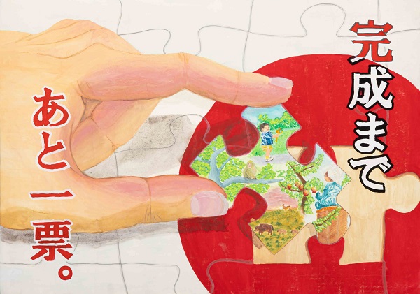 「加納勇一賞」は、長年にわたって島根県の明るい選挙の推進に尽力された故加納勇一氏の功績を記念するとともに、同氏が長く審査委員長を務め、ひときわ思い入れの深かった「明るい選挙啓発ポスターコンクール」の充実を図るため、平成20年度に県審査に設けられた賞です。島根県明るい選挙推進協議会会長賞(小・中・高校各1点)に次ぐ賞と位置づけ、全国審査に出品する作品のうち会長賞以外の作品に授与しています。