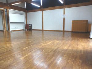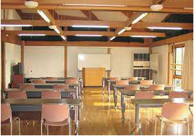 <施設案内> 当館には、以下のように2階に洋室と和室の貸し出しできる部屋があります。 会議や研修、運動、サークル活動等、多目的にご利用いただけます。 ○洋室は通常、机・椅子は出ていません。利用時に倉庫から出してご利用ください。 ○洋室には、机(25台)、椅子(87脚)、演台、花台、ホワイトボード(2台 *1台はスクリーン付き)があります。 ○和室には、押し入れに座卓(9台)、座布団(20枚)があります。 ○給湯室には、ガスコンロ、ポット、やかん、急須、お盆、グラス、湯飲み茶碗、コーヒーカップ、ふきんがあります。 〇飲食は可能ですが、給湯室以外での火気の使用はお断りしています。全館・全敷地内禁煙です。 |