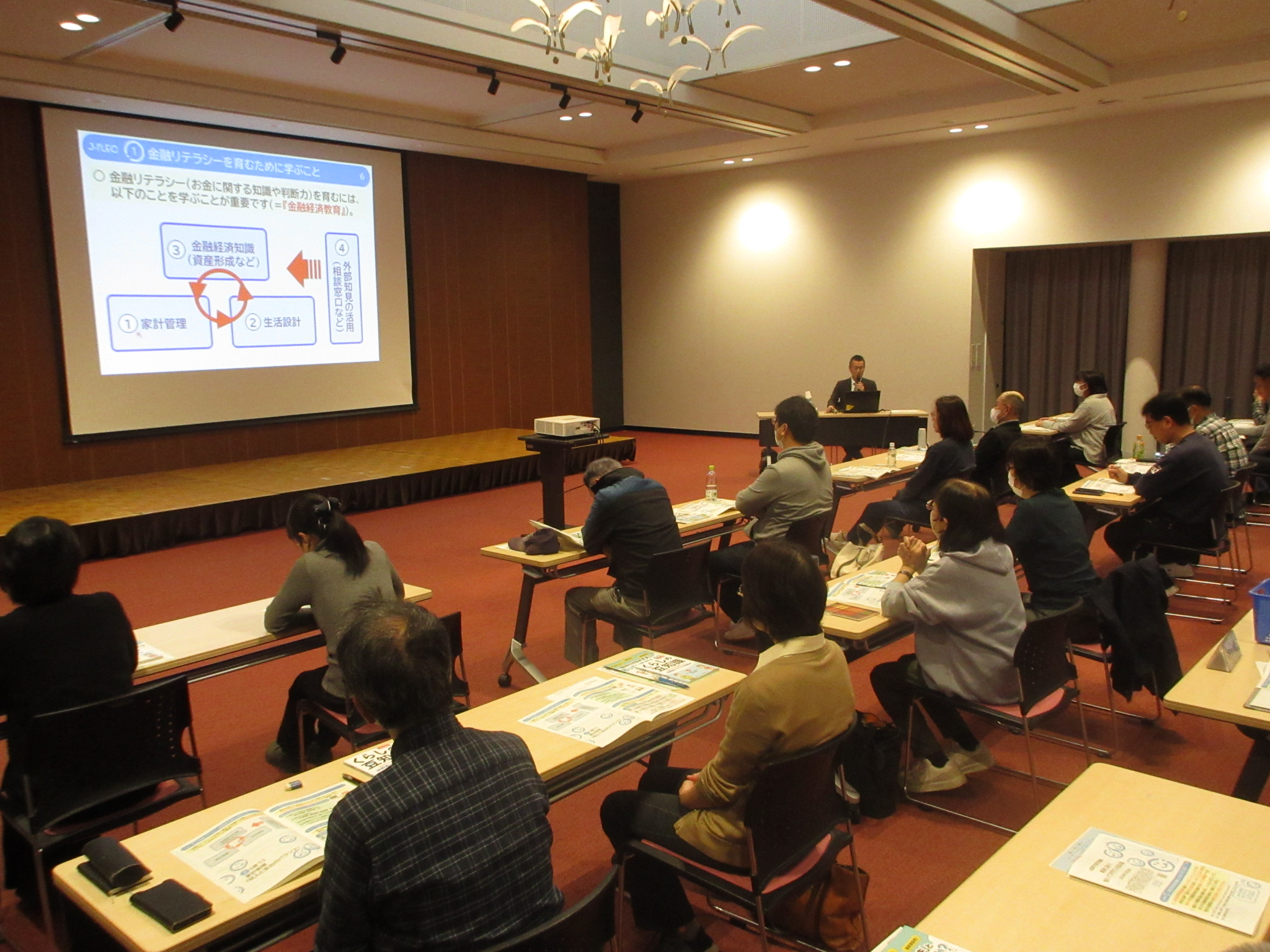 金融リテラシーを育むためには、家計管理、生活設計、金融経済知識などそれぞれ見直すことであるとお話があり、その他に生活費の見直し、クレジットカードの使い方などもお話していただきました。