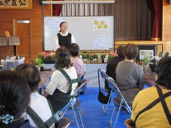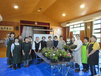 講師にmamaniwaの樋野加奈さんをお招きし、寄せ植え教室を開催しました。 参加した19名は自分の作品に癒されて満足した様子でした。 |