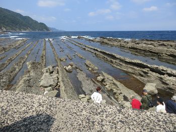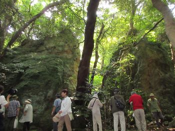 28名が参加して、小型バスで平田の佐香地区にある小伊津海岸の洗濯岩と、小伊津漁港の町並み、立石(たていわ)神社を巡りました。 |