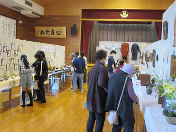 コミセンで活動している団体・教室の皆さん、子どもたちや地域の方々の作品展示のほか、お茶席や健康づくりコーナーなどで賑わいました。 |
