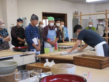 風月庵の大野さんをお招きして「そば打ち講習会」を開催しました。 出来上がったそばで28名が会食し交流を深めました。 |