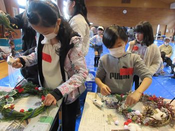 総勢119名の参加で、 しめ縄、X'masリース、キャンドルの物作りと餅つきを行い、楽しい三世代交流の場となりました。 |