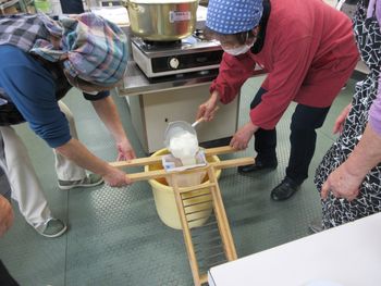 ◆豆腐作り講習会 令和7年12月15日(月) ページトップ↑ 地元の大豆を使った「豆腐作り講習会」に14名が参加しました。 |