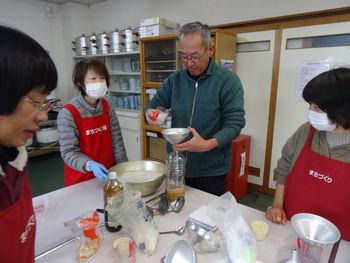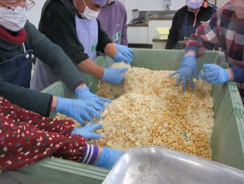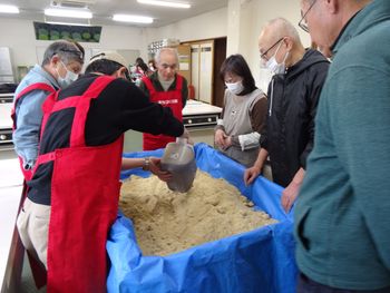 ◆味噌作り講習会 令和8年1月22日(木) ページトップ↑ 10名の参加で、3倍麹の味噌を作りました。 秋ごろの完成が楽しみです。 |