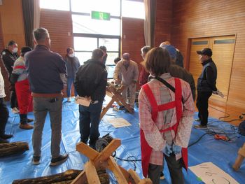 ◆原木しいたけ栽培 令和8年3月4日(水) ページトップ↑ 講師に嘉儀圭一さんをお招きし、18名の参加で、「原木しいたけ栽培」を開催しました。来年の秋以降から収穫ができるそうです。 |
