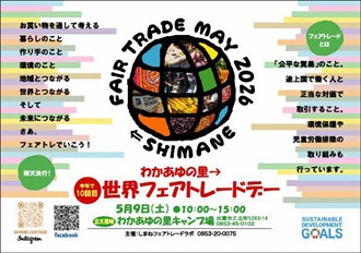 なお、今年も5月9日(土)に、わかあゆの里で世界フェアトレードのイベントが開催されます。